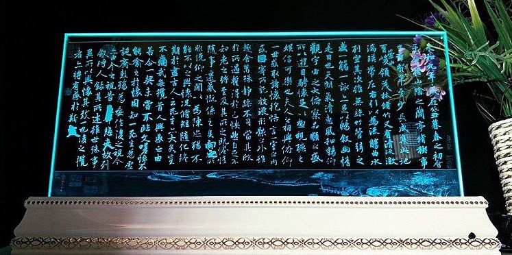 在透光材料內(nèi)部雕刻任意字符和文字。